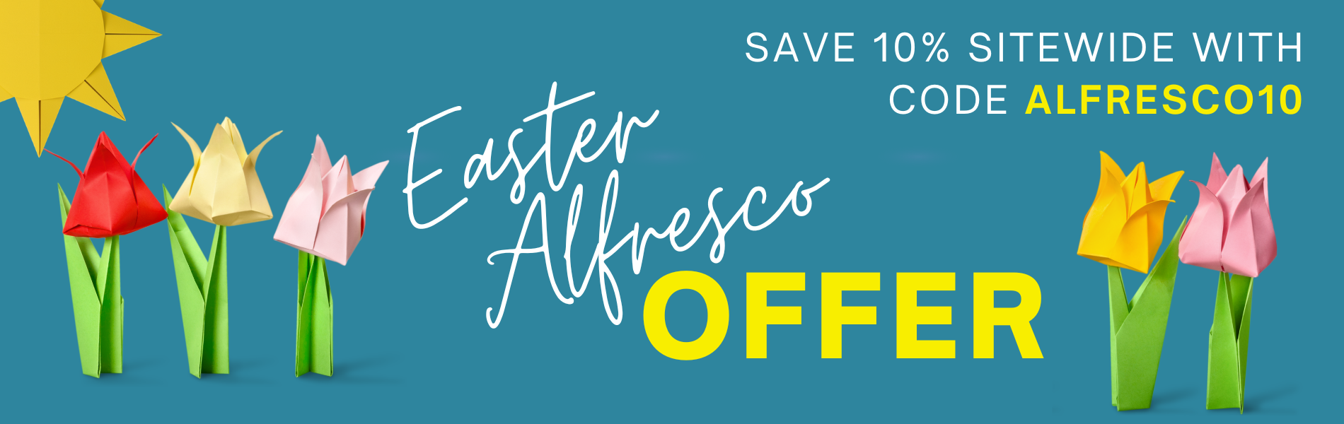 From 2nd to 12th April, everything at Ocean Designs is 10% off with code ALFRESCO10. Garden furniture, parasols, pergolas, outdoor kitchens, accessories — all of it, one code, no exceptions.