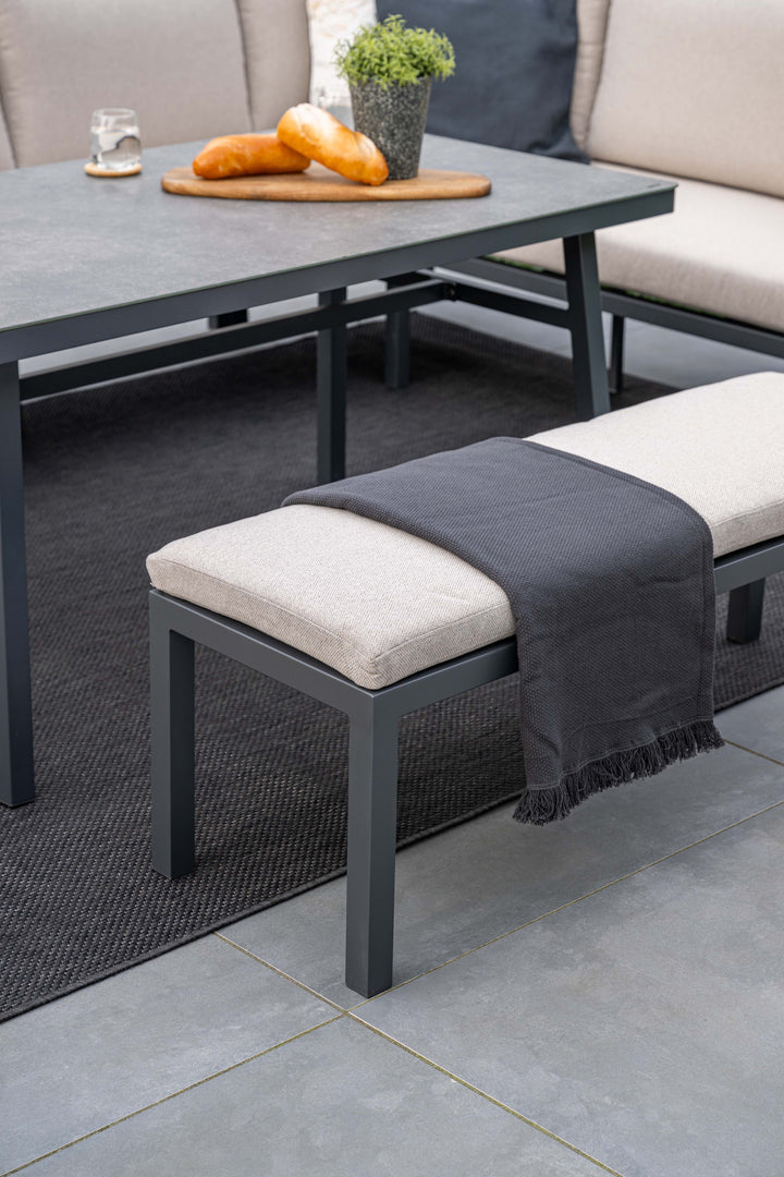 Corsica Sand Cushions - Lounge & Dining Corner Sofa, with Table and Bench
