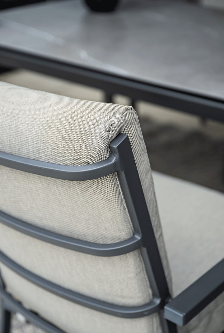 Domingo 6 Seater Dining Table with Sergio Dining Chairs - Light Grey Cushions