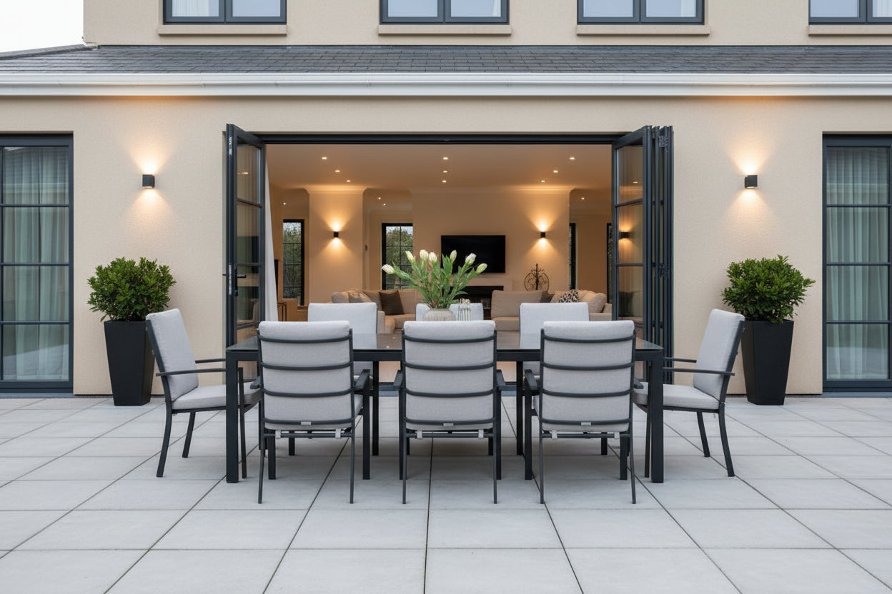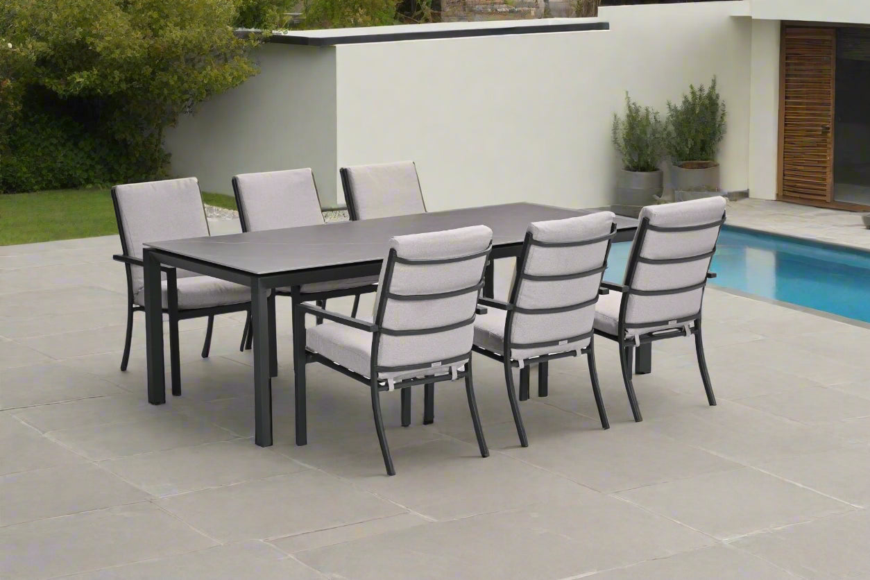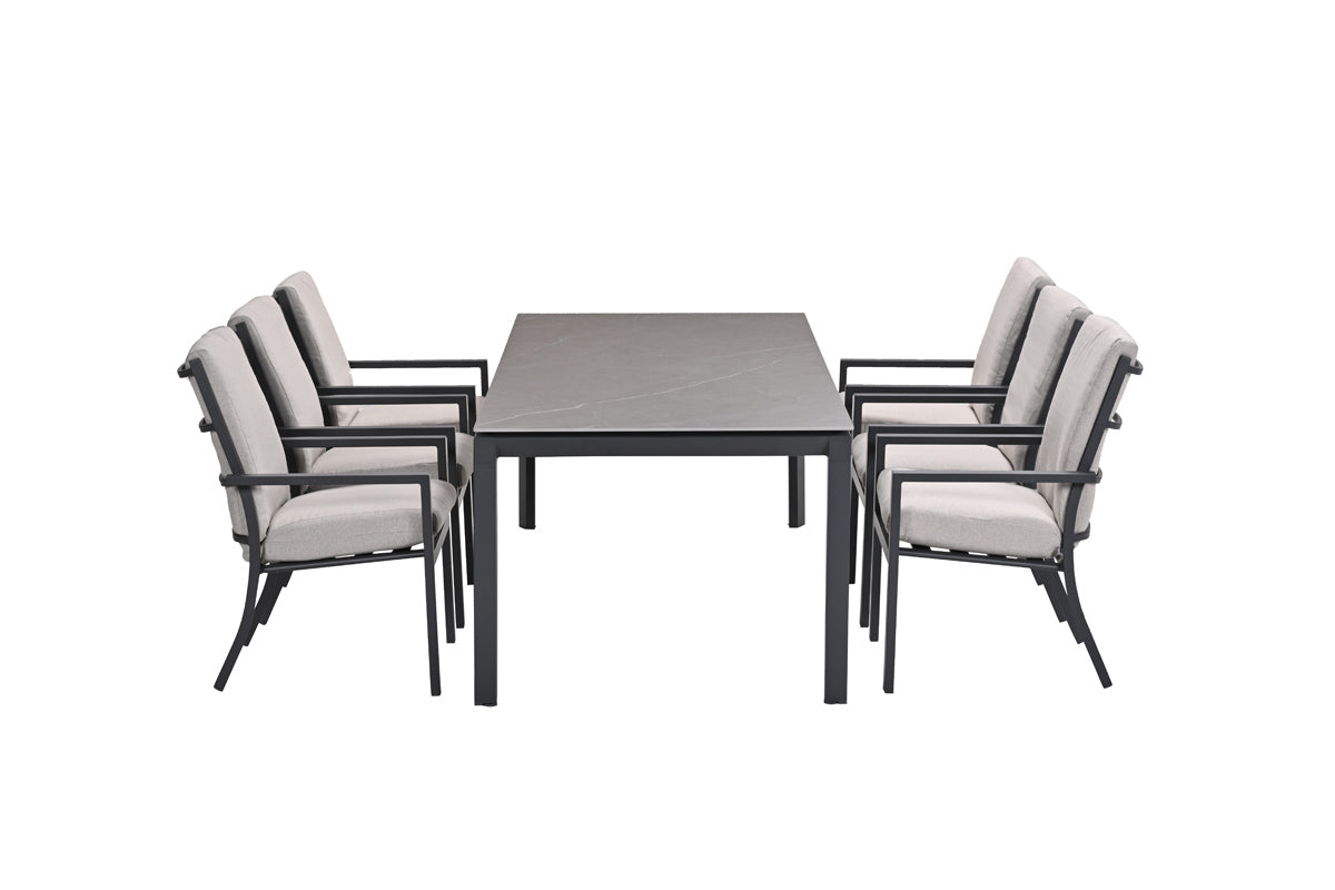 Domingo 6 Seater Dining Table with Sergio Dining Chairs - Sand Cushions