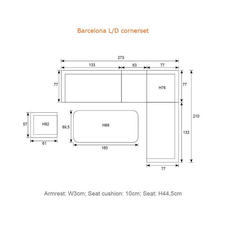 Ex Display Barcelona - Lounge & Dining Corner Sofa, with Table, Bench and Optional Chair
