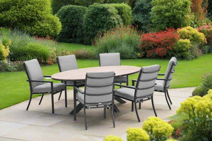Edison Natural - Six Seater Oval Dining Suite with Sergio Chairs - Light Grey Cushions