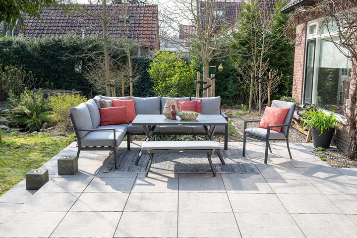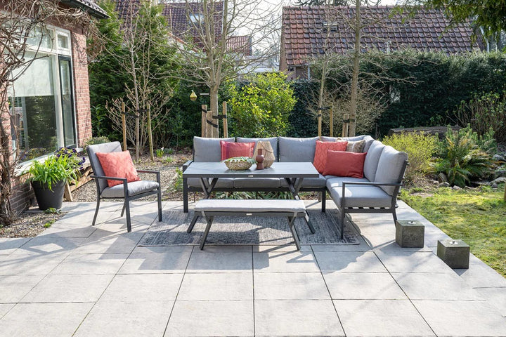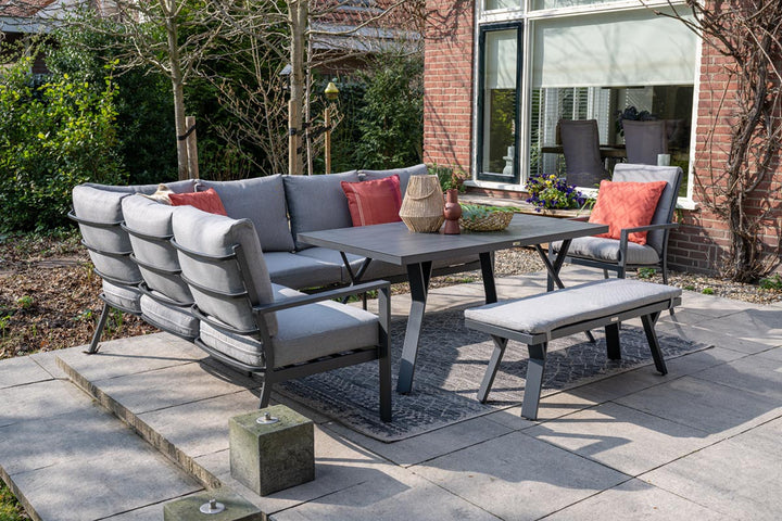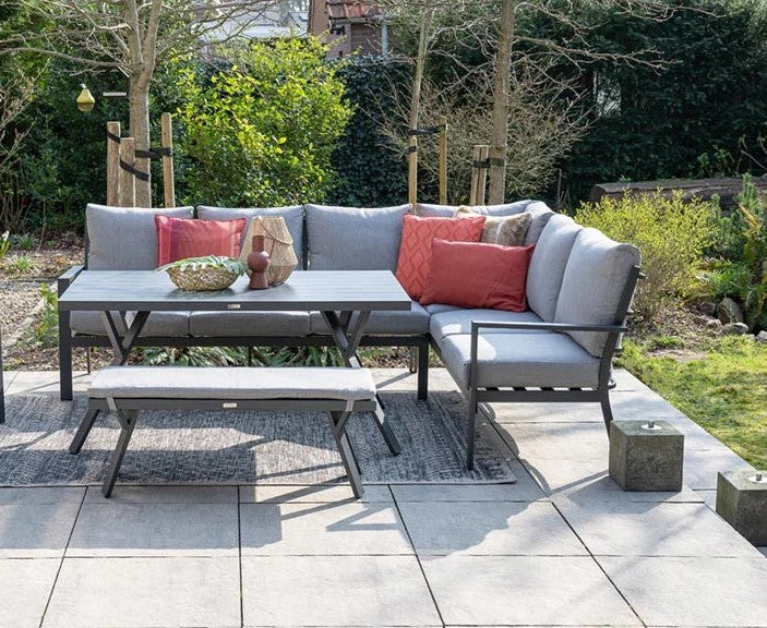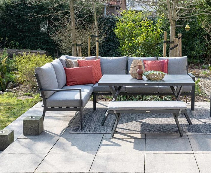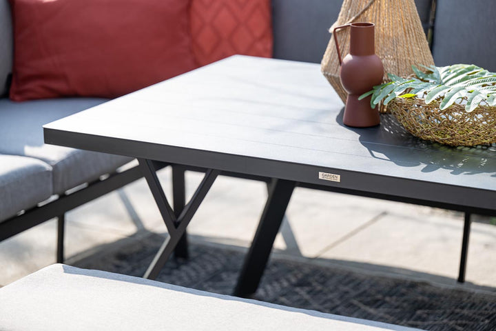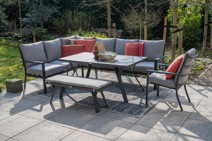 Sergio - Lounge & Dining Corner Sofa, with Table, Bench and Optional Chair - Light Grey Cushions